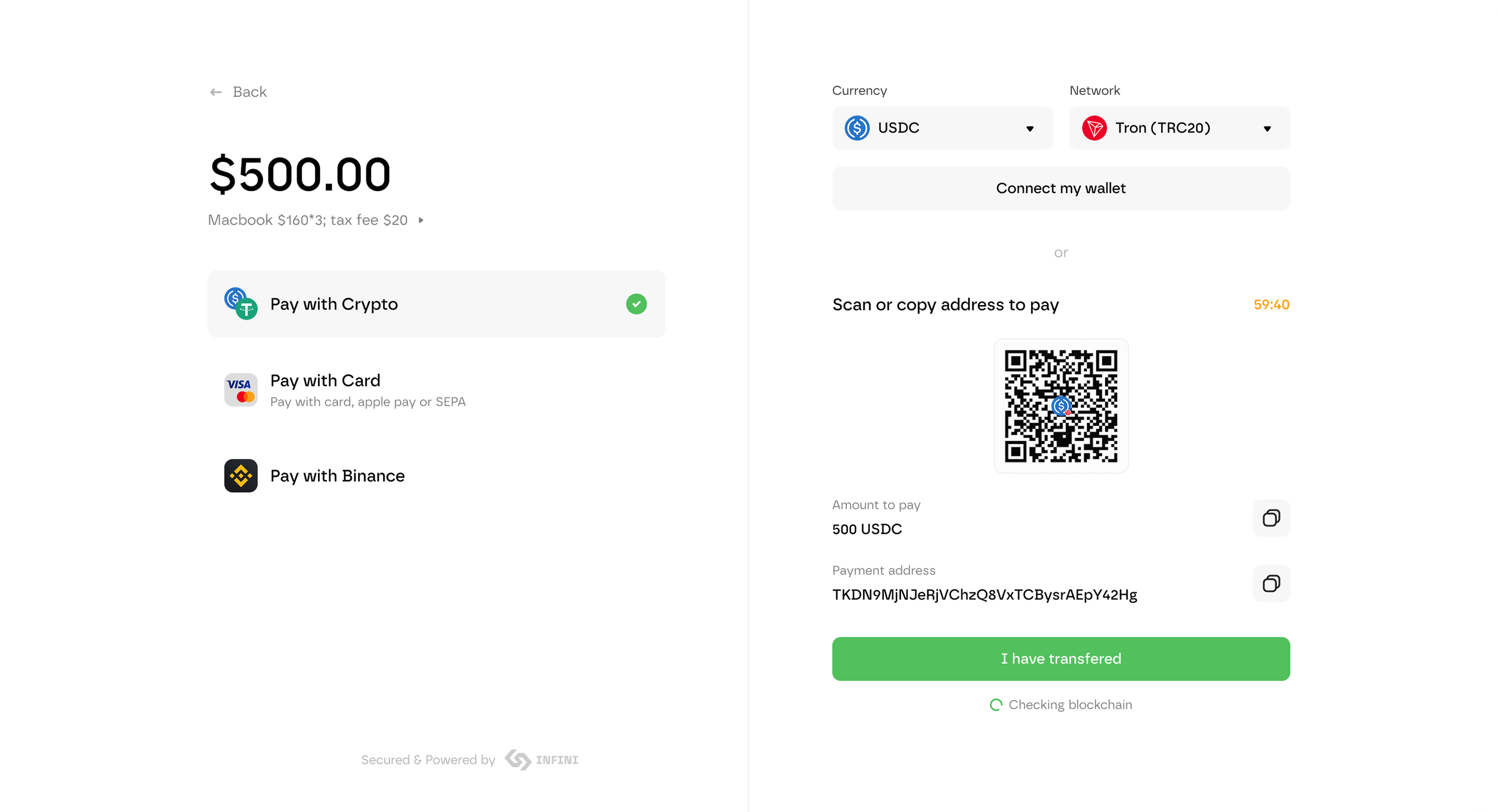 Global revenue shouldn't get stuck in slow rails, failed checkouts, or messy off-ramp workflows. INFINI helps you accept stablecoin payments and turn them into usable operating funds—fast, compliant, and predictable.